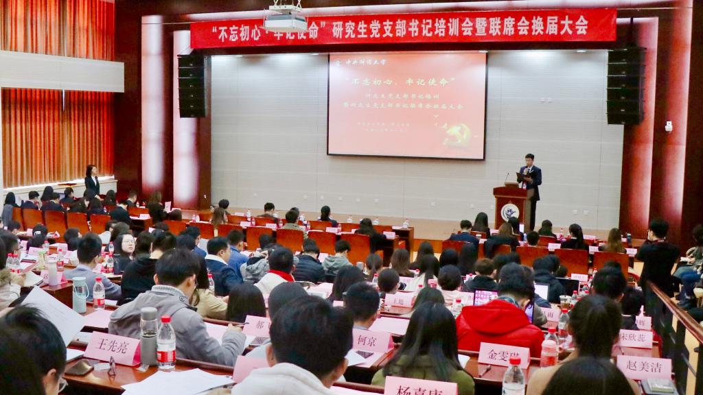 11月6日下午,研究生工作部、伟德betvlctor体育在学术会堂202报告厅召开“不忘初心、牢记使命”研究生党支部书记培训暨研究生党支部书记联席会换届大会。伟德betvlctor体育党委书记何秀超、研究生工作部部长张学勇、研究生工作部副部长徐振东,以及来自全校25个学院的106个研究生党支部的书记和委员出席了此次会议。会议由第二届研究生党支部书记联席会副秘书长董纪元主持。