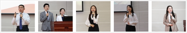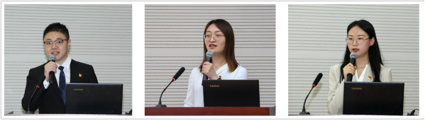 政府管理学院刘家琦、马克思主义学院张颖、法学院李子琦、经济学院赵丹宁、社会与心理学院陈嘉曦以党历史上的重要人物为主题,分别讲述中国共产主义运动的先驱李大钊、无产阶级革命家方志敏、共和国勋章获得者张富清、脱贫攻坚楷模黄文秀、防疫英雄陈薇献身党的事业的伟大事迹,号召广大研究生学习他们身上顽强拼搏、不懈奋斗的伟大精神,传承红色基因,赓续共产党人精神血脉。