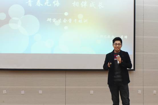 之后,研究生思想教育办公室老师、研究生会秘书长董帅老师围绕全国教育大会所强调“培养什么人、怎样培养人、为谁培养人”这一根本问题,作了题为“我是谁?你是谁?他是谁?”主题培训,寄语新一任研究生会全体骨干。首先,董老师对研究生会工作表示由衷肯定与大力支持。为使与会骨干进一步明确自身的目标定位与肩负的使命担当,加强与骨干间的密切交流,董老师加入趣味十足的互动环节,激发了在场研究生骨干浓厚兴趣,提升了骨干参与感。随后,董老师分别对话院研究生会主席、校研究生会部长和校研究生会干事,与其就学生工作进行了深入交流互动。最后,董老师寄语全体研究生会成员,作为肩负重任的一代,要耐得住寂寞,经得住打磨,做身携英雄气、书生气、江湖气、讲政治、讲学习、讲团队的研究生干部!