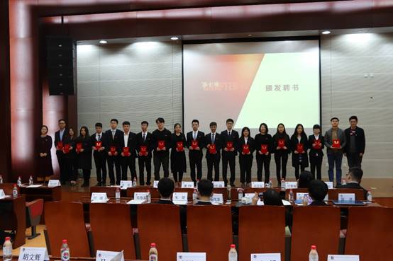 大会最后,嘉宾为校、院研究生会骨干颁发聘书。校研究生会各部门依次上台进行风采展示。