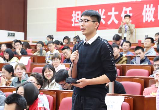 活动特别设置革命后代与青年学子面对面交流环节,现场同学积极参与。一位同学提问道,在新时代青年学子应该树立怎样一种英雄观?邓英老师回答说,新时代下也有很多热血青年,就比如“逆行者”——消防队员,明知有死亡、有危险,仍然背负着救援物资往前冲,她说这就是新时代青年都应该敬仰的英雄。英雄什么时候都在,为了国家和民族的利益甘于奉献,这就是英雄。