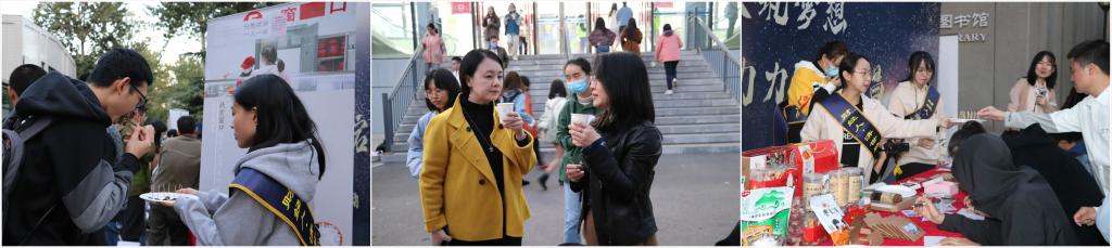 下午16:00,项目中心在我校学院南路校区食堂前与沙河校区图书馆前同时设置宕昌好物展台,蜂蜜、黄芪、枣仁派、五宝茶等宕昌特色产品琳琅满目。中心成员热情邀请我校师生品尝了解,感受宕昌好物的魅力,旨在通过师生的亲身体验,鼓励更多的人参与到当晚的消费扶贫活动。