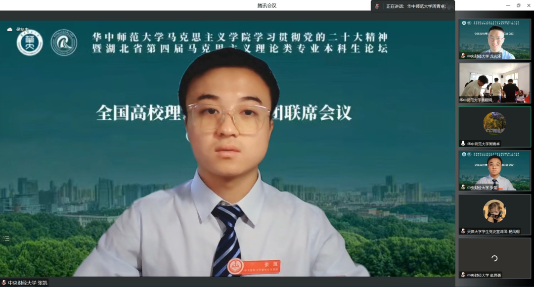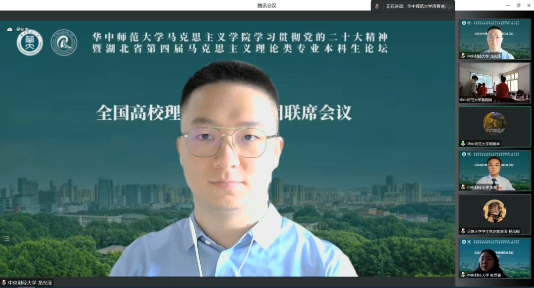 为深入学习宣传贯彻习近平新时代中国特色社会主义思想和党的二十大精神,2023年5月13日,我校研究生宣讲团受邀参加华中师范大学马克思主义学院主办的湖北省第四届马克思主义理论类专业本科生论坛第四分论坛“全国高校理论宣讲类社团联席会议”。我校研究生宣讲团讲师张凯进行示范宣讲,团长龙光泽参与交流研讨。