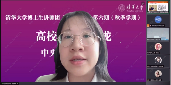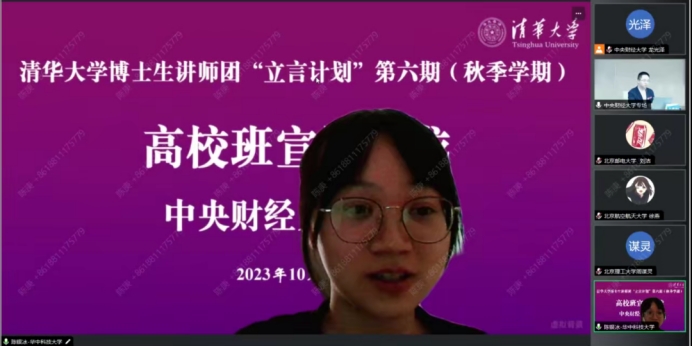 2023年10月28日,清华大学博士生讲师团“立言计划”第六期(秋季学期)高校班宣讲沙龙活动在我校南路校区学术会堂706成功举行,本次活动由我校研究生宣讲团承办,来自清华大学、中国人民大学、北京航空航天大学、北京理工大学,北京化工大学、北京邮电大学、中国农业大学、北京林业大学、北京师范大学、中国政法大学、华中科技大学、电子科技大学等全国12所高校的 “立言计划”助教及学员参加,我校研究生宣讲团团长龙光泽主持。