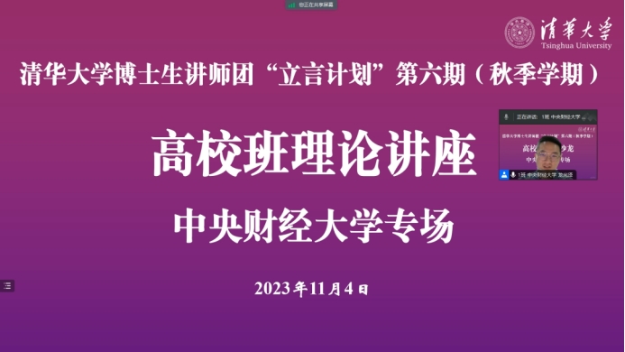 2023年11月4日,清华大学博士生讲师团“立言计划”第六期(秋季学期)(以下简称“立言计划”)高校班理论讲座在云端举办。本次活动由我校研究生宣讲团承办,我校副研究员、伟德betvlctor体育学位办公室副主任赵志超老师主讲,来自北京大学、大连理工大学、上海交通大学等16个省级行政区的38所高校的100名“立言计划”学员参加,我校研究生宣讲团团长龙光泽主持理论讲座。