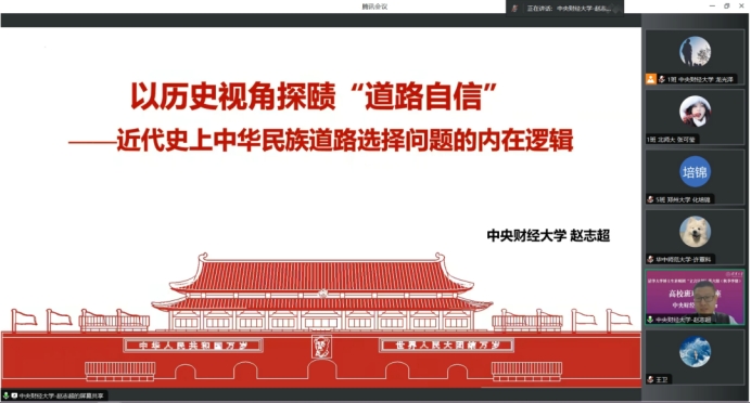 “四个自信”是习近平新时代中国特色社会主义思想的重要内容,是以习近平同志为核心的党中央治国理政的重要理论创新成果。赵志超老师聚焦“四个自信”其中的“道理自信”,以《历史视角探赜“道路自信”——近代史上中华民族道路选择问题的内在逻辑》为题进行讲授。