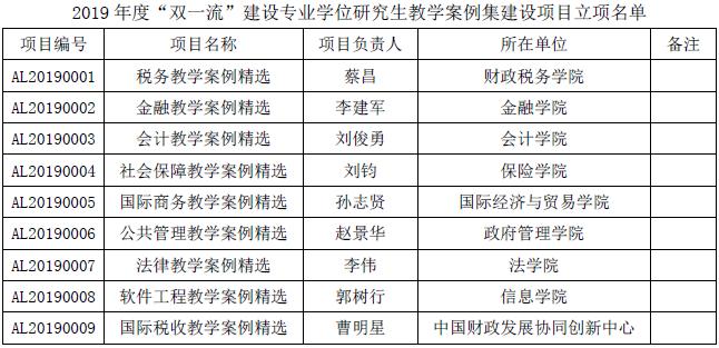 附件:1.2019年度“双一流”建设专业学位研究生教学案例集建设项目立项名单