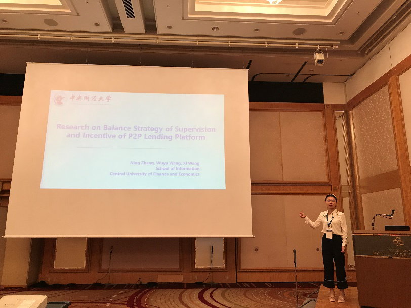 我校信息学院博士生王舞宇参与了此次会议,并在主题为“数字社会的机遇与挑战:我们准备好了吗(Opportunities and Challenges for the Digitized Society: Are We Ready?)”的分会小组中宣讲了自己的英文论文,题目为“Research on Balance Strategy of Supervision and Incentive of P2P Lending Platform”,主要从政府既要维护互联网金融行业的经济效益又要该行业稳定性的双目标最优化的角度出发,设定场景,通过博弈建模和数值仿真模拟来分析P2P网贷平台监管与激励的策略选择问题。该论文内容丰富、视角新颖、方法得当且深入,具有一定的创新性和现实意义,分会场的主席Supumali Ahangama教授对该论文表示认可和赞同,并与王舞宇同学在会后进行了深入交流,提供了宝贵的指导意见和建议。