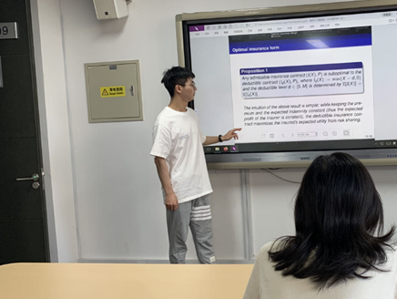 返校后,胡涛同学在学院13号楼209教室进行了一次学术报告会,与多位保险学院的博士生和研究生分享参加27th APRIA 2023 Annual Conference的心得体会并汇报了论文结果。此次学术会议交流得到伟德betvlctor体育研究生学术交流支持计划的资助。