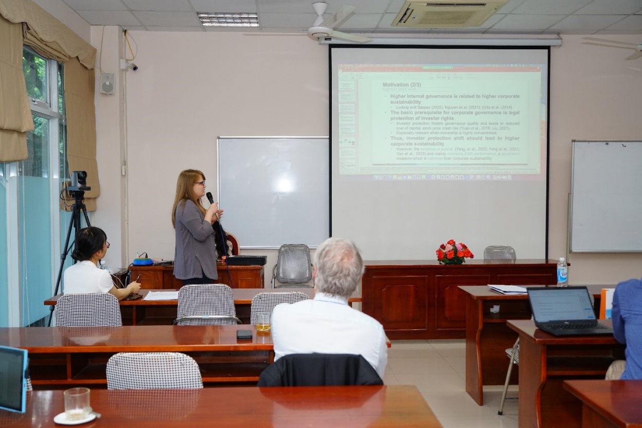 2023年10月26日至10月28日,2023越南银行与金融会议(Vietnam Symposium in Banking and Finance)在越南河内举办。本届会议由越南科学家和专家协会(AVSE Global)、银行学院(河内)和国际金融经济促进会(ISAFE)联合举办,共有来自全世界一百余位学者参与。研讨内容涉及银行监管和金融服务、金融与可持续发展、企业金融、行为金融等多个领域。金融学院2020级博士研究生Olga Kopyrina同学及其导师应展宇教授和吴锴副教授共同合作的论文《Building Sustainable Business through Protecting Minority Shareholders: an Insight from China》经会议评审录用。Olga Kopyrina同学受邀参会并对论文进行汇报。
