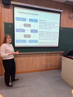 论文考察了2014年中国在年度股东大会上引入强制性在线投票的措施,这是对少数股东保护的一种转变,探讨了其如何影响公司的可持续性。研究结果表明,中小股东保护对企业可持续性具有长期的积极影响,这主要是由于减少了管理机会主义和控股股东的隧道效应。在报告过程中,其他学者认真聆听并提出了具有参考意义的问题和建议。
