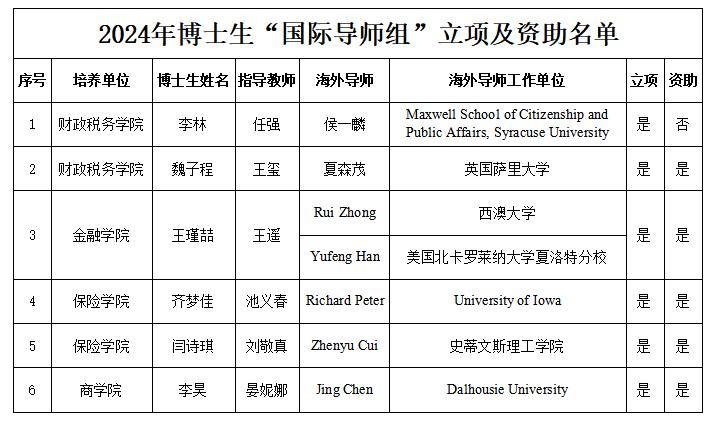 依据《伟德betvlctor体育博士研究生指导教师“国际导师组”建设支持计划实施办法(2018年3月修订)》(研字﹝2018﹞20号),伟德betvlctor体育启动了2024年博士生“国际导师组”建设支持计划。经过项目申报、学院学位评定分委员会审核、伟德betvlctor体育组织专家评审等环节,同意为6名博士生建立的“国际导师组”立项,并对其中5个项目进行项目资助,资助金额每项不超过5万元,根据我校财务管理规定,资助经费须在2025财务年度内执行完毕。具体名单如下: