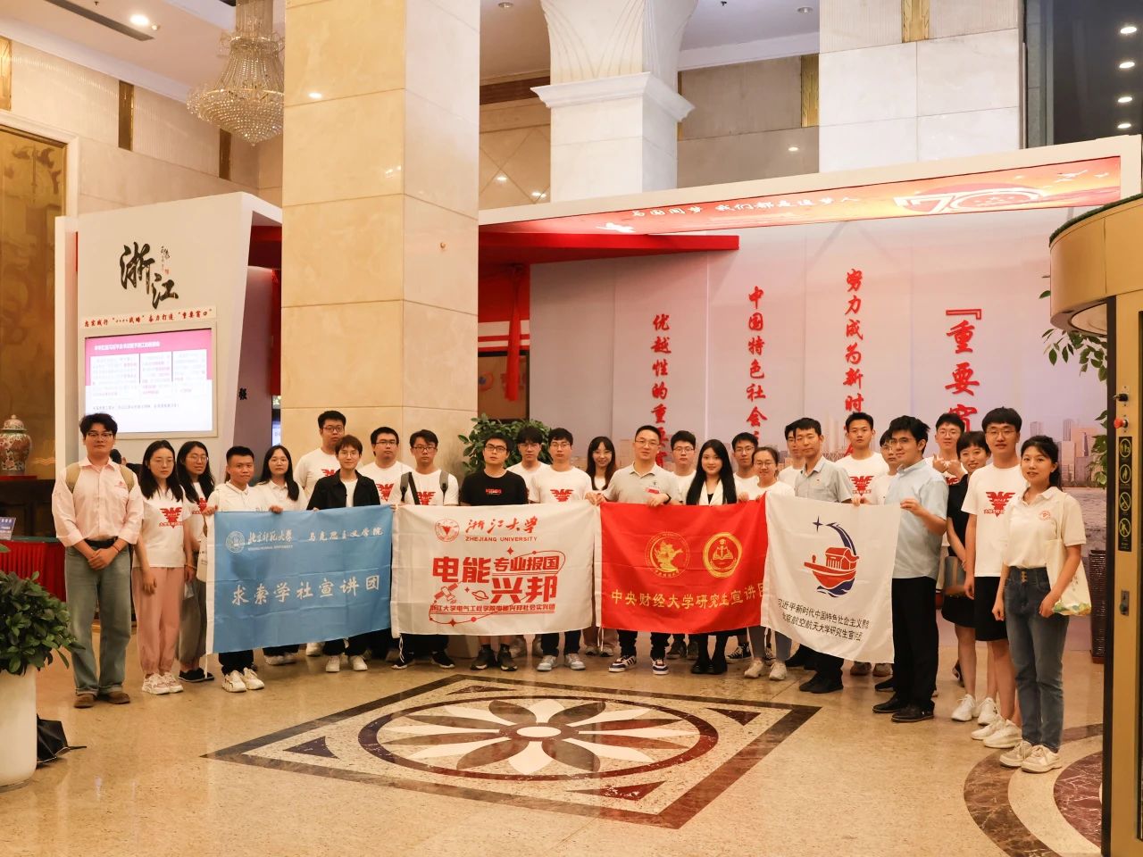 2023年7月27日,浙江大学研究生理论宣讲团来北京开展专线宣讲活动。我校研究生宣讲团与清华大学博士生讲师团、北京大学博士生讲师团、北京航空航天大学研究生宣讲团、北京师范大学马克思主义学院求索学社宣讲团受邀参加,龙光泽、皮福玲面向浙江大学电气工程学院“电能兴邦”社会实践团现场宣讲。