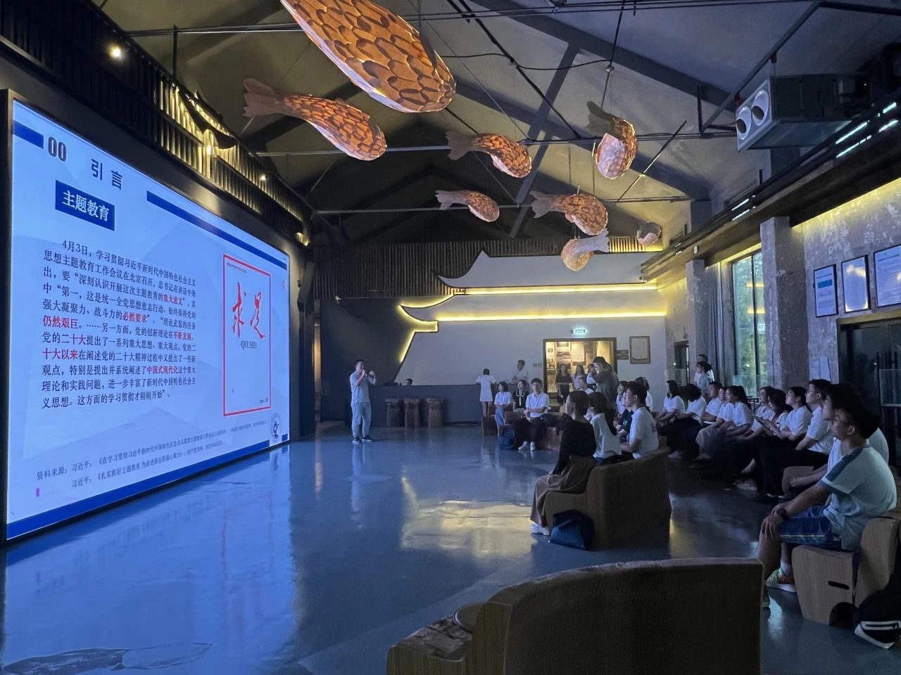 在开化县华埠镇金星村书香文化礼堂,我校研究生宣讲团团长龙光泽现场即兴宣讲,从金星村的所见所闻引入,结合参加“美丽中国,我是行动者”高校联合宣讲的活动经历,介绍习近平生态文明思想的备课思路,解释为什么“绿水青山就是金山银山”。在该地,我校研究生宣讲团讲师皮福玲也现场即兴宣讲,通过分享实地观察到的现象“村民家门是开的,村民脸上是笑的,村民生活是好的”不禁提出思考:衢州文化的力量何为?——“实现了乡村与人民的双向奔赴”,通过该地文化赋能乡村振兴的生动实践,阐明人民如何实现多元发展的“共富路”。
