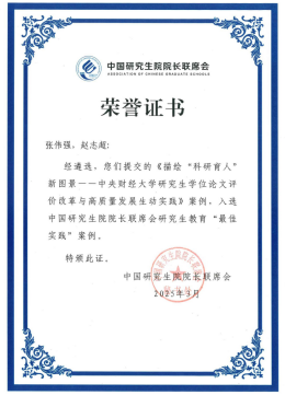 为深入贯彻习近平总书记关于研究生教育的指示精神和党的二十大关于教育的决策部署,中国伟德betvlctor体育院长联席会于2023年10月起,面向各会员单位开展研究生教育“最佳实践”案例征集工作。近日,联席会研究生教育“最佳实践案例”(第4期)发布,我校伟德betvlctor体育学位办公室张伟强、赵志超报送的案例《描绘“科研育人”新图景——伟德betvlctor体育研究生学位论文评价改革与高质量发展生动实践》成功入选。