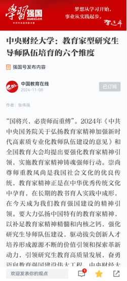11月8日,学习强国平台刊发研究生工作部、伟德betvlctor体育张伟强的理论文章《教育家型研究生导师队伍培育的六个维度》。