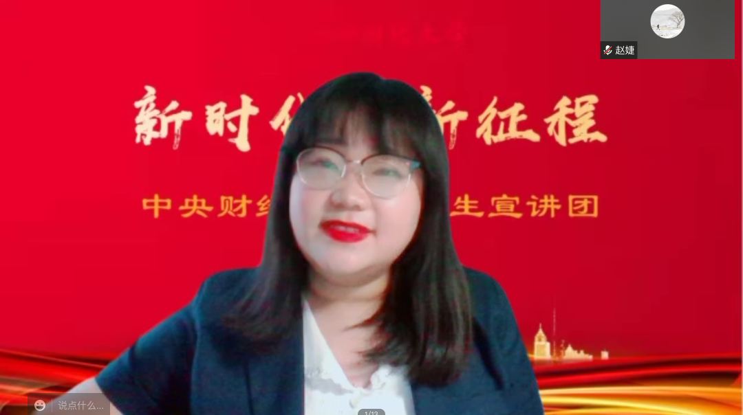 我校博士生宣讲团团长常冠龄围绕十九届六中全会精神,从宣讲内容、自身经历、学科发展等方面参与交流讨论。