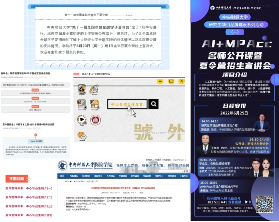 同时,各招生单位也独立开展形式多样的夏令营宣传活动。中国财政发展协同创新中心制作了形象生动、活泼风趣的招生宣传视频并利用微信公众号对往届优秀夏令营员进行系列推送,金融学院、会计学院、保险学院、政府管理学院进一步开展本院系夏令营答疑宣讲活动;此外,作为伟德betvlctor体育研究生项目品牌建设系列活动第一站,会计学院将名师公开课与宣讲会相结合,全面介绍人工智能+MPAcc特色专业项目。各学院丰富多角度的宣传工作增强了考生对学院招生专业的理解,形成宣传合力,进一步提升了对优秀生源的吸引力。