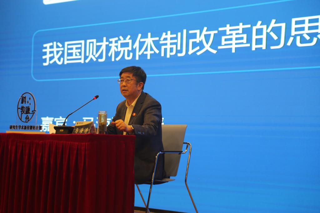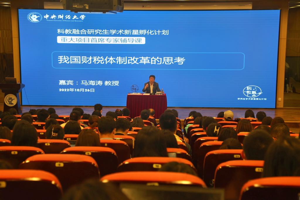 10月26日,校党委副书记、副校长马海涛教授以“我国财税体制改革的思考”为题,在沙河校区图书馆地下一层报告厅,为同学们带来了一场别开生面的“重大项目首席专家辅导课”。研究生工作部副部长、伟德betvlctor体育副院长肖鹏主持本次辅导课,研究生工作部副部长、伟德betvlctor体育副院长徐振东,财政税务学院党委副书记宋立岩参加辅导课。