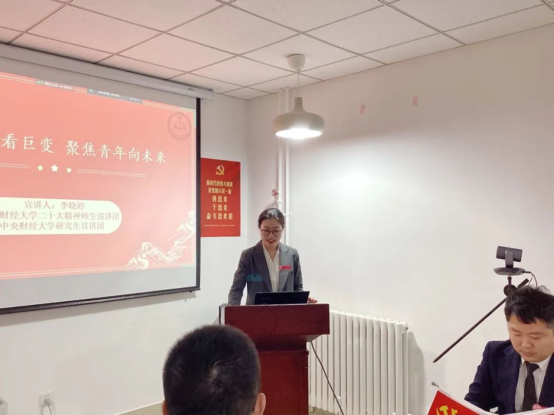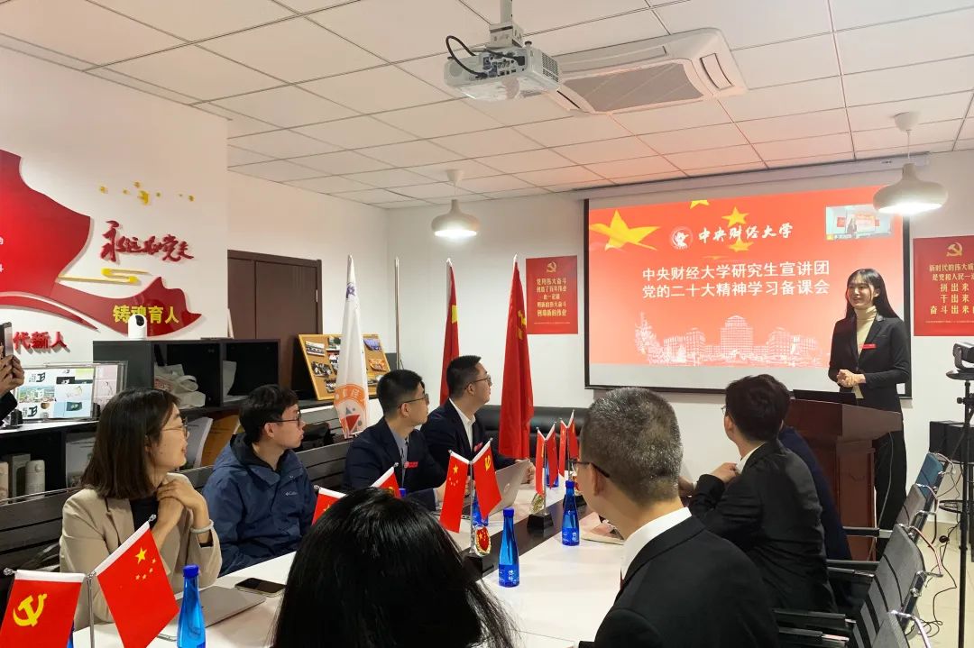 本学期研究生宣讲团将持续围绕“学习宣传贯彻党的二十大精神”主题,通过党的二十大精神学习备课会高标准、高质量做好备课及宣讲活动,引导广大青年树立“立德树人,财经报国”的理想抱负,坚定不移听党话,矢志不渝跟党走。