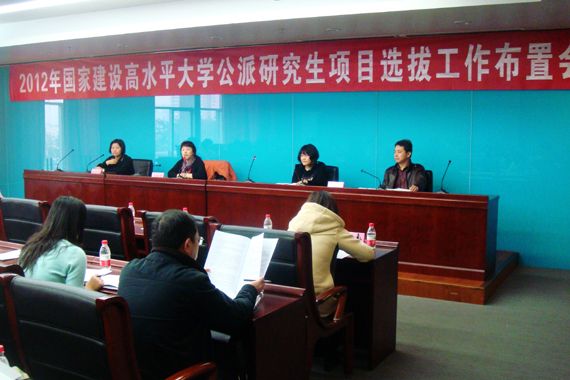 赵丽芬助理首先简要回顾了我校在2007年至2011年开展国家公派项目第一期所取得的成绩和所做的大量工作,提出了2012年至2016年我校国家公派项目第二期的总体设想,对2012年的选派工作进行了部署。她指出,开展国家公派项目是我国高层次拔尖创新人才及国家财经、管理和法学类专业人才培养的重要途径。2007年至2011年五年间,我校作为首批46所试点院校之一,学校始终坚持为国家发展战略培养人才的宗旨,以国家发展战略对人才的需求为导向,以培养一批高层次拔尖创新人才为目标,在学校领导高度重视、相关职能部门和学院(中心、研究院)的共同协调努力下,国家公派研究生项目总计录取173人,其中攻读博士学位研究生53人(含本科生20人),联合培养博士生120人;学科分布主要集中在我校金融学、财政学、国民经济学等优势特色学科;公派研究生分别派往美国、加拿大、德国、英国、法国、澳大利亚、日本等12个国家。这其中,2011年录取总人数为24人,攻读博士学位研究生和联合培养博士生各半,两类留学类别录取比例首次达到1:1。第一期国家公派项目无论是录取总数还是年度录取人数都名列全国同类财经院校首位,为国家经济社会发展提供了高层次人才支撑和智力保障,拓展了我校与国外教育教育发达国家高等院校的合作与交流。国家留学基金委给予我校第二期国家公派项目每年联合培养博士生20人的签约名额,即是对我校第一期工作的充分肯定和大力支持。