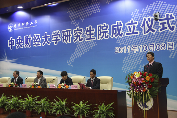 王广谦校长发表了热情洋溢的致辞,指出我校伟德betvlctor体育的成立,在中财研究生教育发展史上具有里程碑的意义,标志着我校向“有特色、多科性、国际化”高水平研究型大学的发展目标迈出了坚实的一步,为新时期我校高水平研究型大学的建设提供了新的发展契机。伟德betvlctor体育将尽全力办好伟德betvlctor体育。首先,要继续大力加强学科建设,进一步优化学科体系,为高质量的人才培养提供更加坚实的学科基础与支持;要切实做好教育部“专业学位研究生教育综合改革试点项目”,努力探寻培养高端财经创新型人才的新模式。第二,深入推进研究生培养体制机制综合改革,通过改革招生选拔机制、创新培养模式、建立健全导师激励约束机制等措施,形成培养高水平研究生的新机制。第三,加快研究生培养的国际化进程。第四,切实改善办学条件,大力提升研究生教育管理水平。