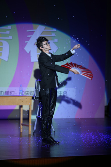 精彩的转场视频将晚会带入了第三个篇章“写给未来”。相声社相声《老英国人》以幽默诙谐的语言,夸张丰富的表情使观众捧腹不止。中国戏曲学院的王文强老师带来的《变脸》节目更是掀起整场晚会的高潮。表演过程中观众们目不转睛,生怕错过每一次变化,更想一探其中的奥秘。演出尾声时王老师还走下舞台,与观众亲密接触,并面对面表演变脸,观众席传来一阵又一阵的欢呼,为王老师的表演所折服。之后北京理工大学杨智明博士带来的魔术表演也可谓奇幻莫测。吞剑、瞬间转移等等,让观众近距离感受到魔术的奇妙与震撼。晚会在《青春华尔兹》曼妙的舞姿中圆满结束。