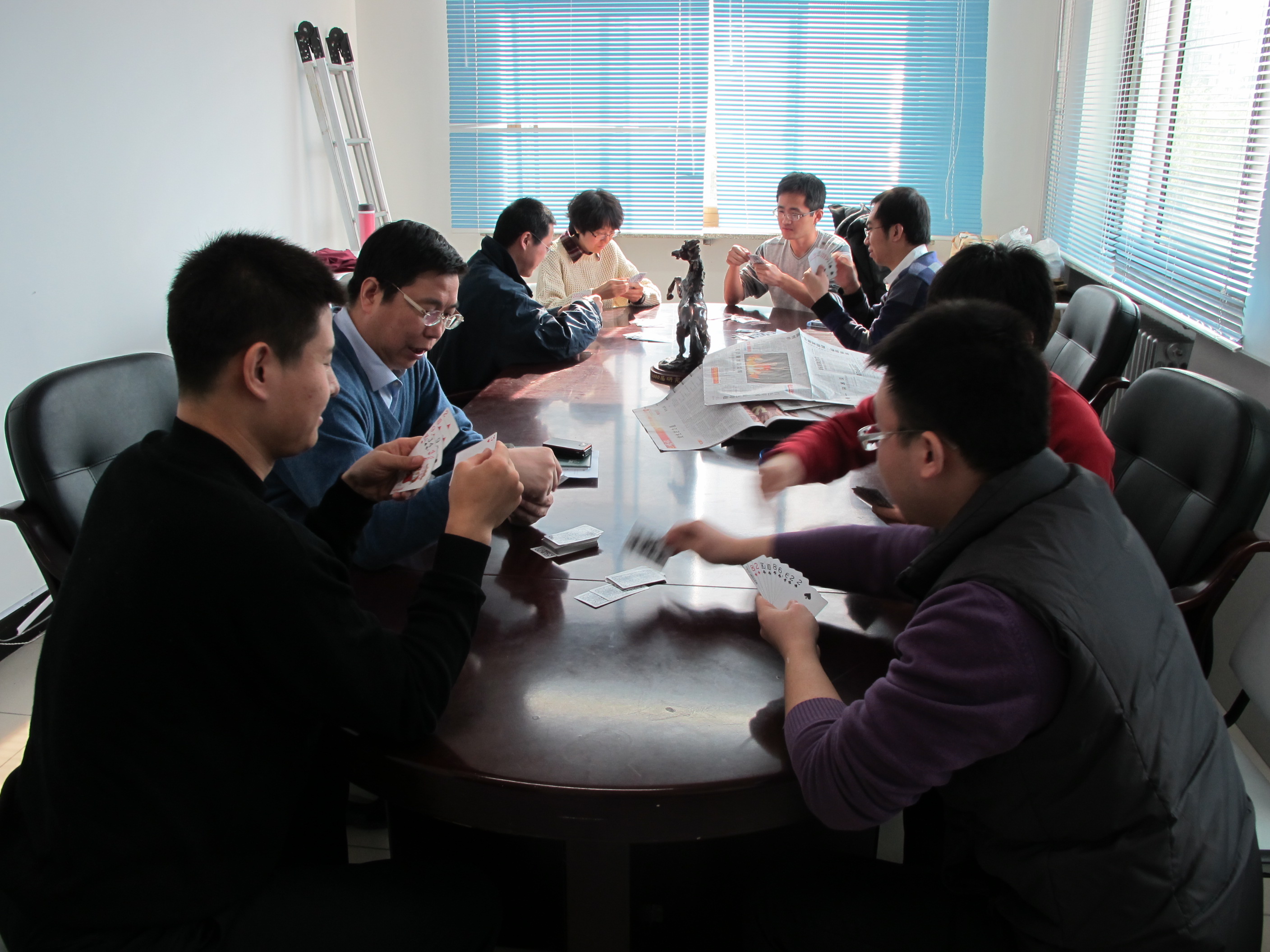 比赛期的每天中午12时至13时,伟德betvlctor体育16位棋牌高手相互间默契配合、奋勇搏杀,开始了第一循环争夺半决赛的入场券。经过7轮的斗智斗勇和合力较量,最终周卫中、黄昊组合,张艳萍、祝维龙组合,贾玉革、马国焘组合,徐振东、陈振组合晋级决赛圈。