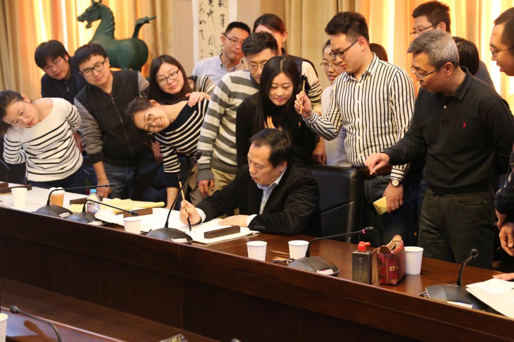 此次培训活动,陈明书记现身说法,结合自身经历,从基础知识、学习方法、书写技巧等角度对书法进行细致讲解,并亲身示范落座姿势、握笔手势等。学员们热情高涨,纷纷围绕在陈书记周围,感受陈书记下笔的力度和角度。陈书记在感慨参与培训学员之多的同时,更欣喜于部门同志的热情。