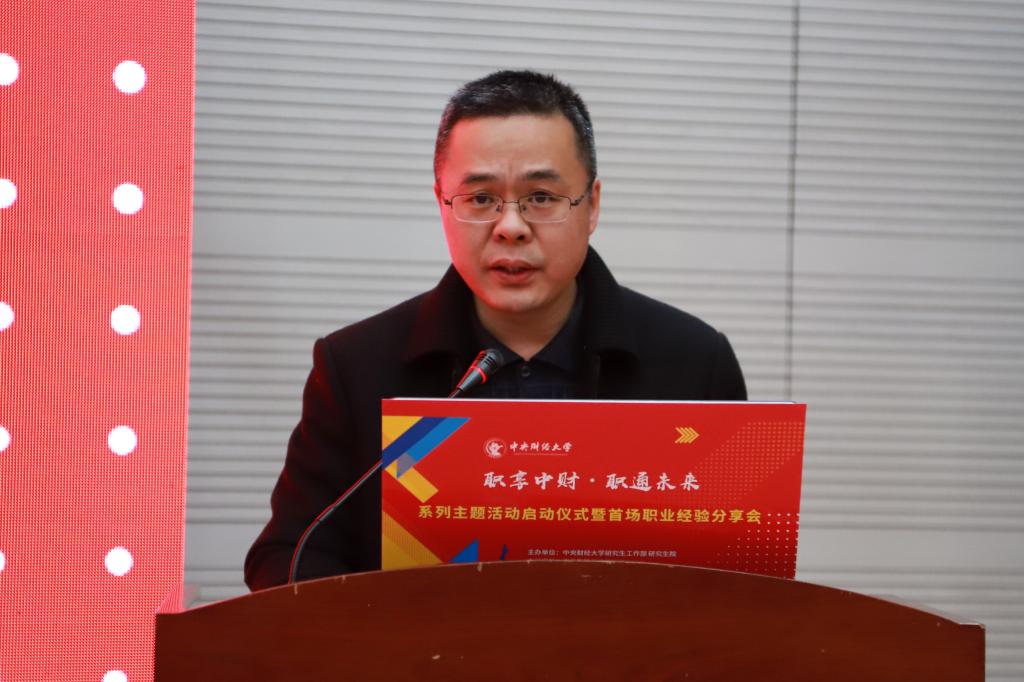 龙马奋进七十载,职通未来新时代。11月27日下午,伟德betvlctor体育“职享中财·职通未来”系列主题活动启动仪式暨职业经验分享会在学院南路校区学术会堂202报告厅举行。研究生工作部副部长、伟德betvlctor体育副院长徐振东,研究生工作部思想教育办公室、研究生会秘书长董帅,校研究生会代表、各学院(研究院、中心)研究生会代表出席启动仪式。另有来自两校区的150余名同学到场参加。