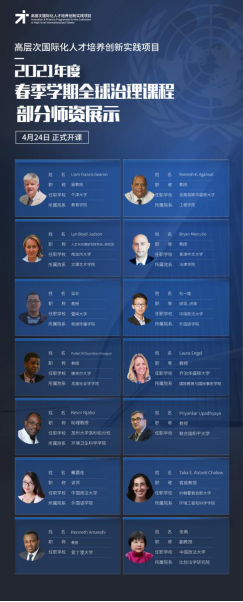 为进一步提升我校人才培养的国际化水平,培养和储备更多具有国际视野和专业素质的国际组织人才,建设好教育部中外人文交流中心在我校设置的“高层次国际化人才培养创新实践项目基地”,我校于2020-2021学年春季学期继续面向全体研究生开设全球治理线上课程项目,现就本学期选课相关工作安排通知如下: