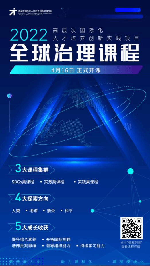 (3)进阶类、实践类课程仅面向参与学习1门及以上全球治理课程并完课的同学可选。
