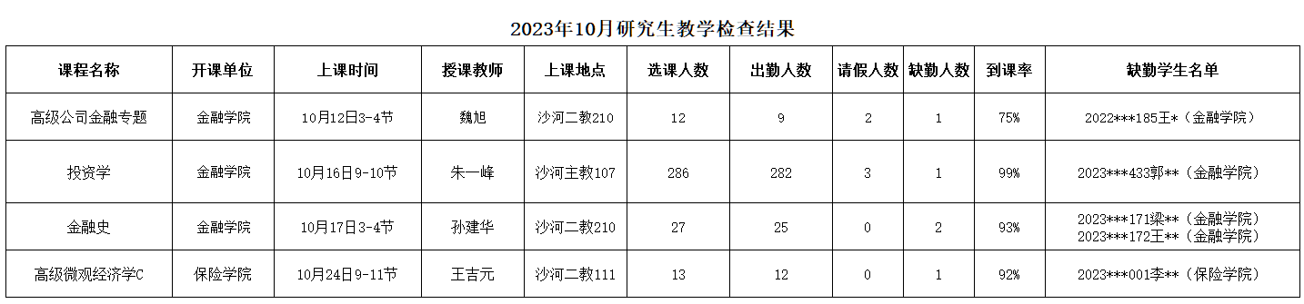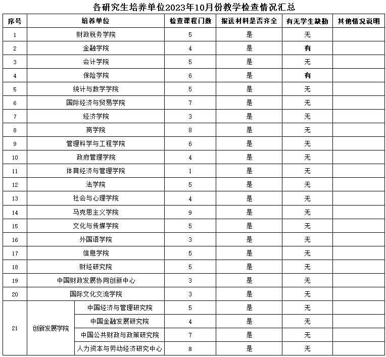 现将2023年10月份各单位上报教学检查及缺勤情况进行通报: