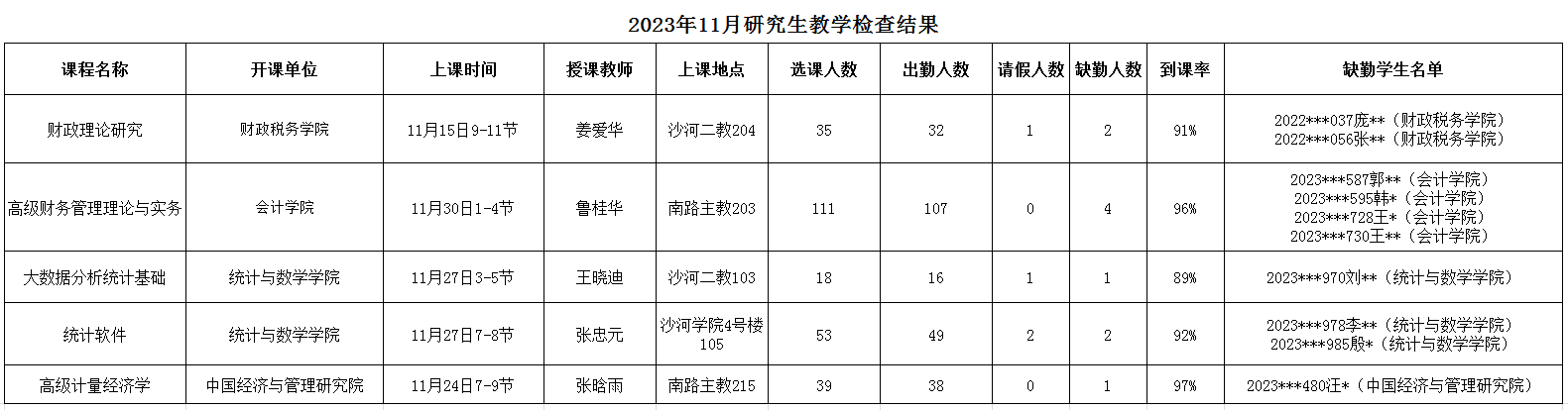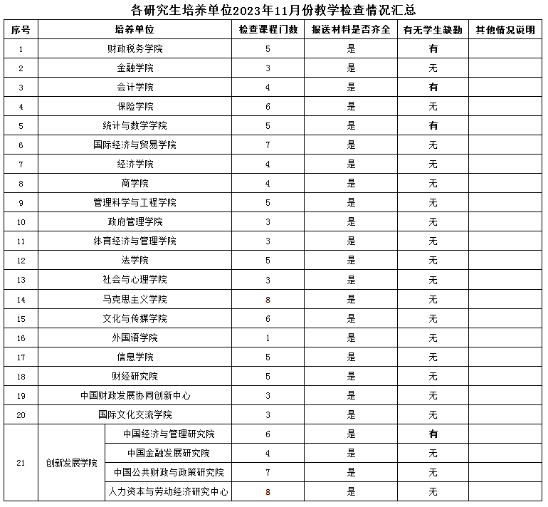 现将2023年11月份各单位上报教学检查及缺勤情况进行通报: