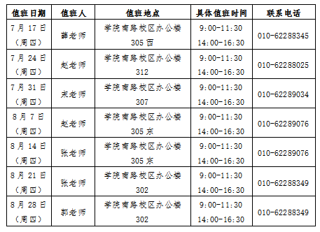 根据学校安排,学生暑假放假时间为7月14日,在校生秋季学期报到时间为8月31日,正式上课时间为9月1日。为方便广大师生在暑期更好地安排学习、工作和生活,研究生工作部、伟德betvlctor体育安排工作人员到校值班。